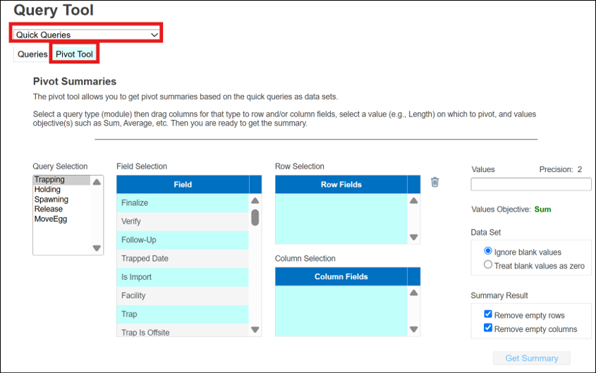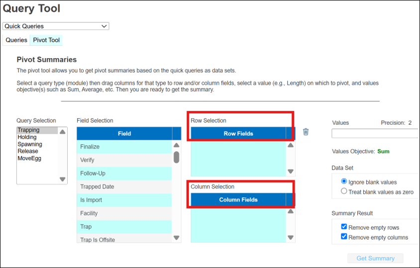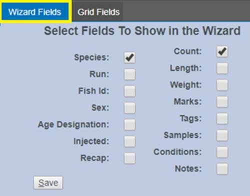 · Set Fields: Currently only available for Trapping, the Set Fields Menu is designed so that users can customize the fields they see when performing quick data entry through the Wizard or viewing entered data in the Trapping Grid.
