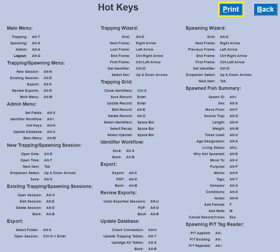 · View/Print Hot Keys: Created to provide a reference sheet of all Hot Keys available in FINS Offline, for quick navigation.