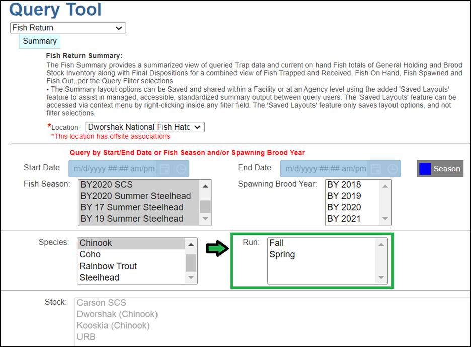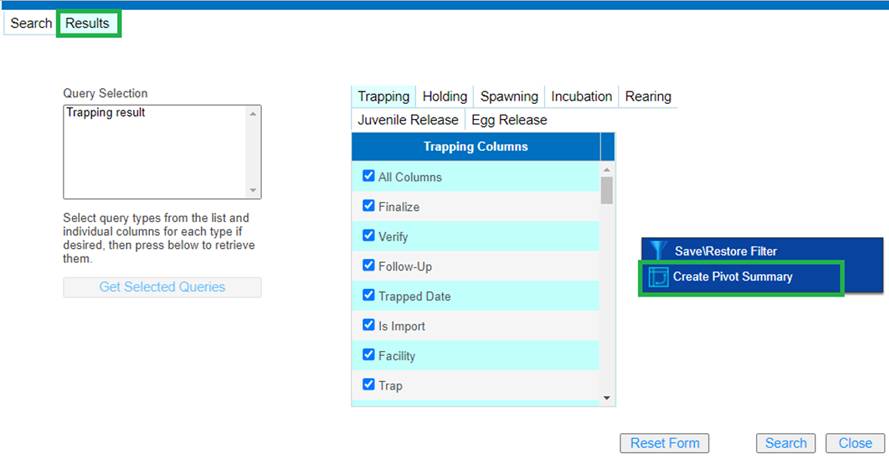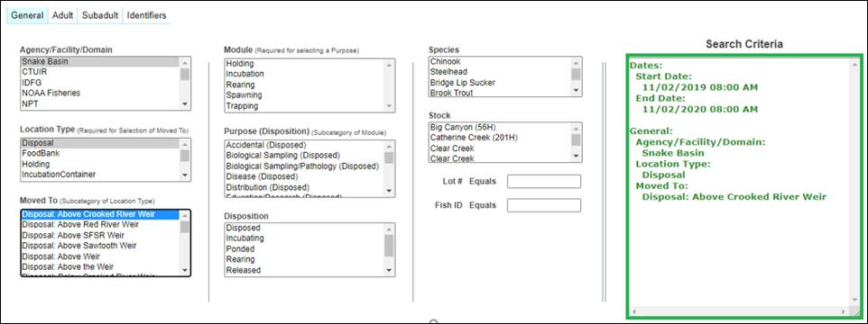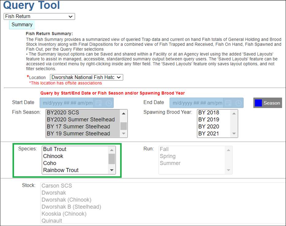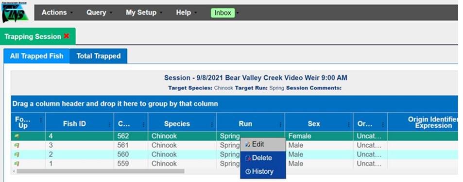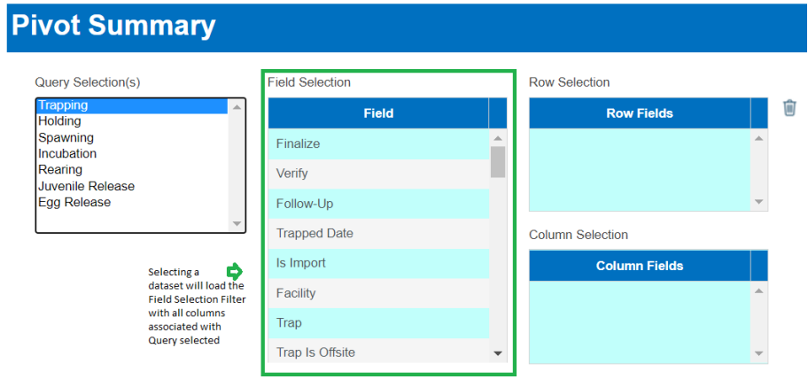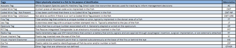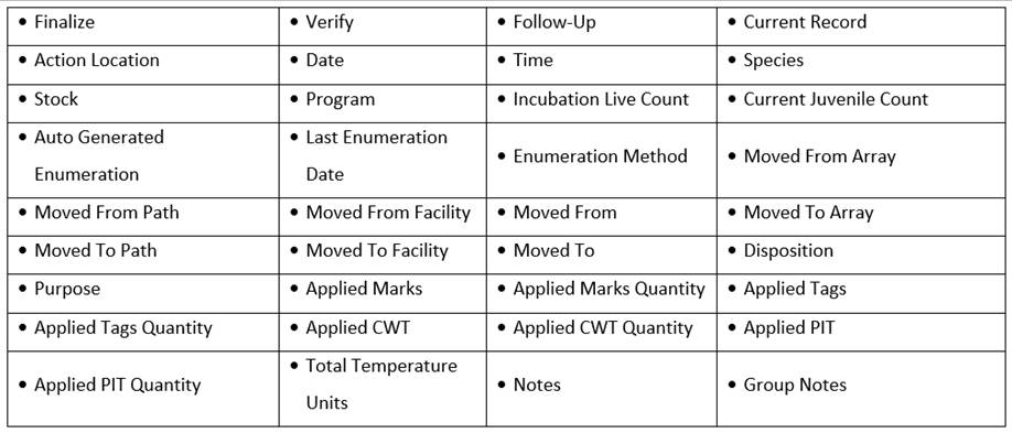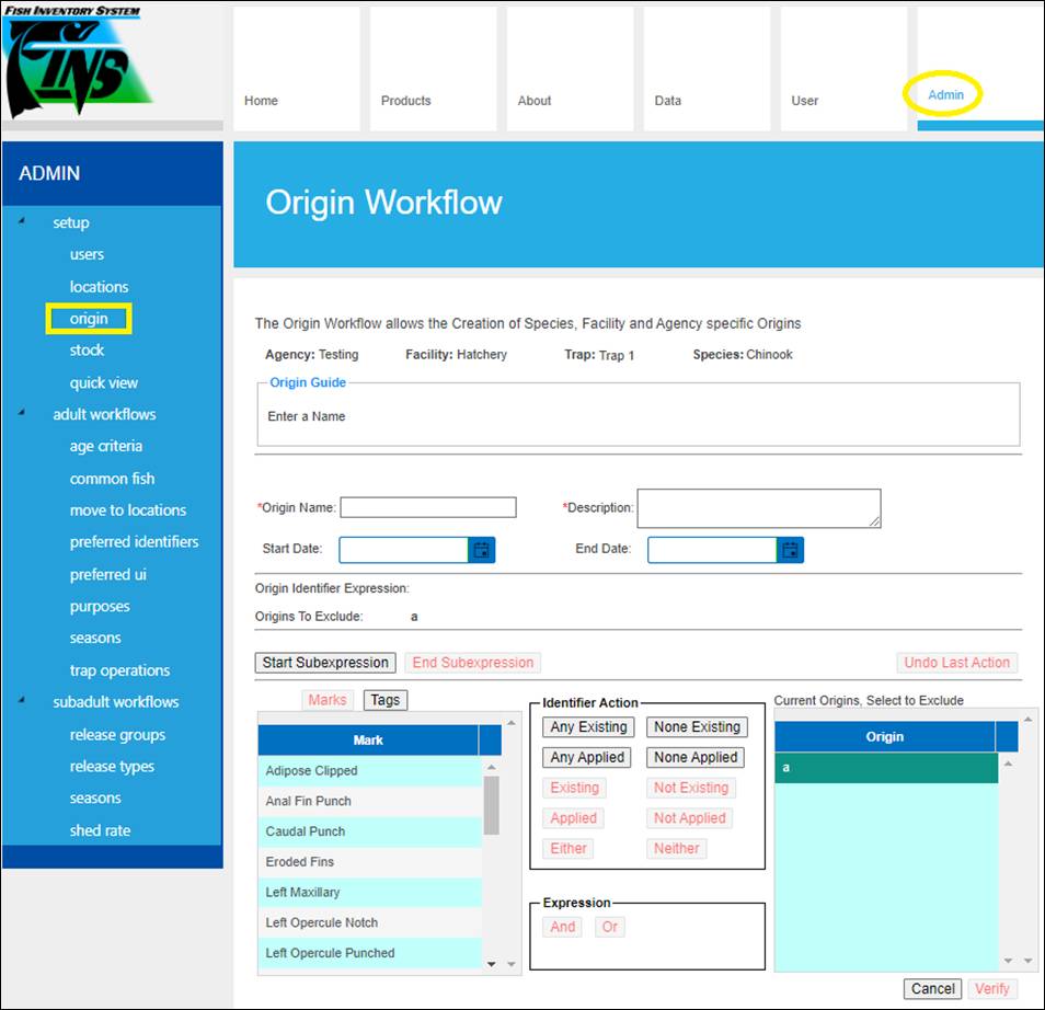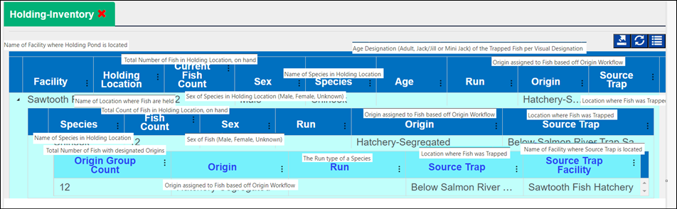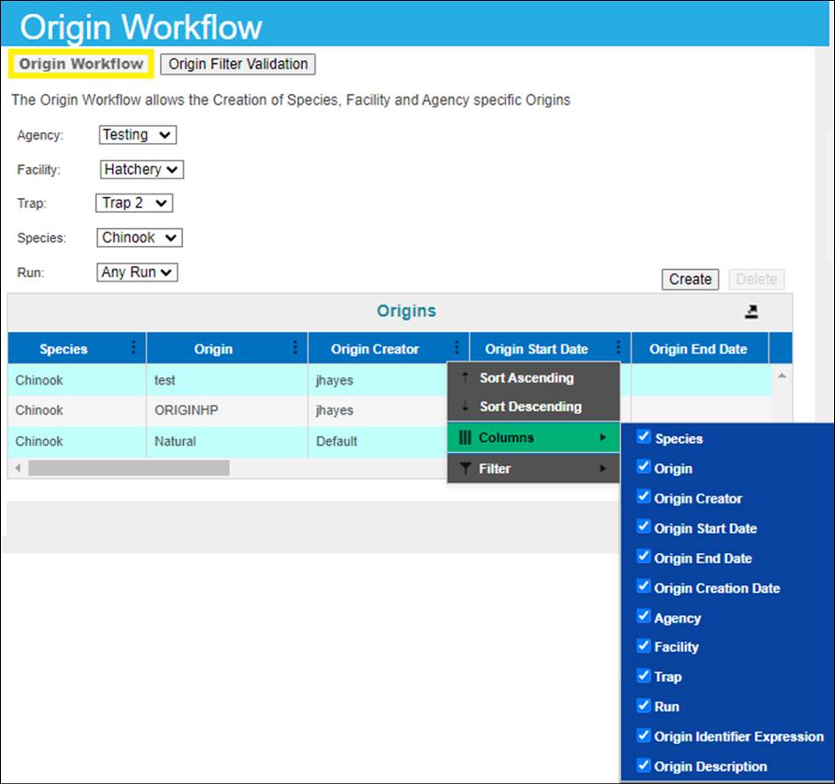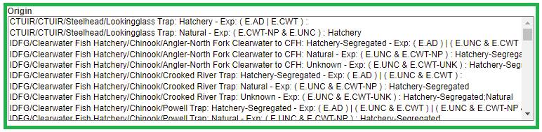 · Origin – View Workflow Origins and associated Origin Columns (Species; Origin; Origin Creator; Origin Creator Date; Agency; Facility; Trap; Run; Origin Identifier Expression; Origin Description)