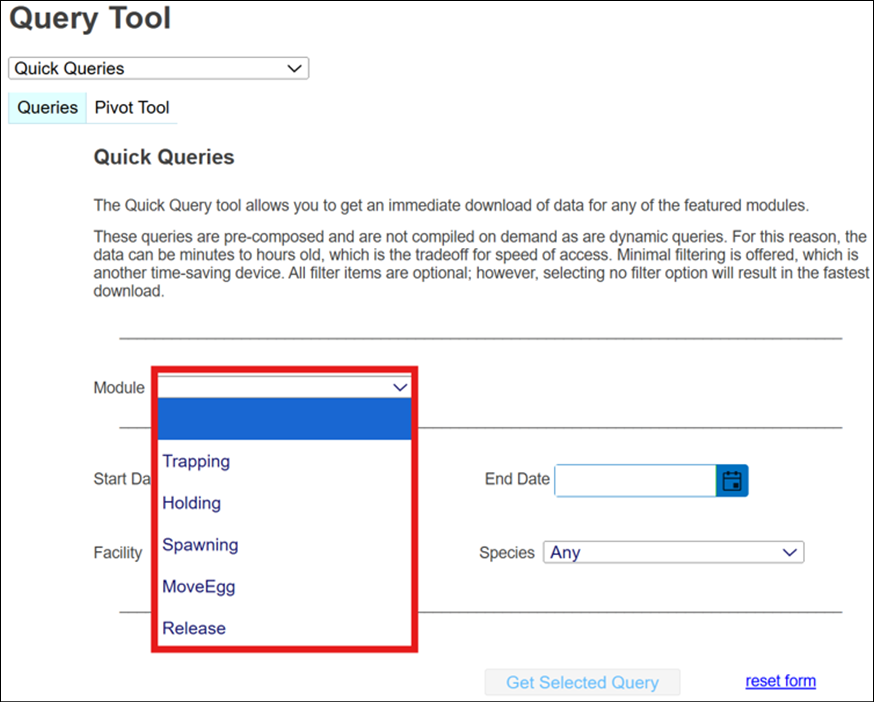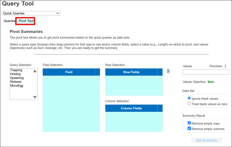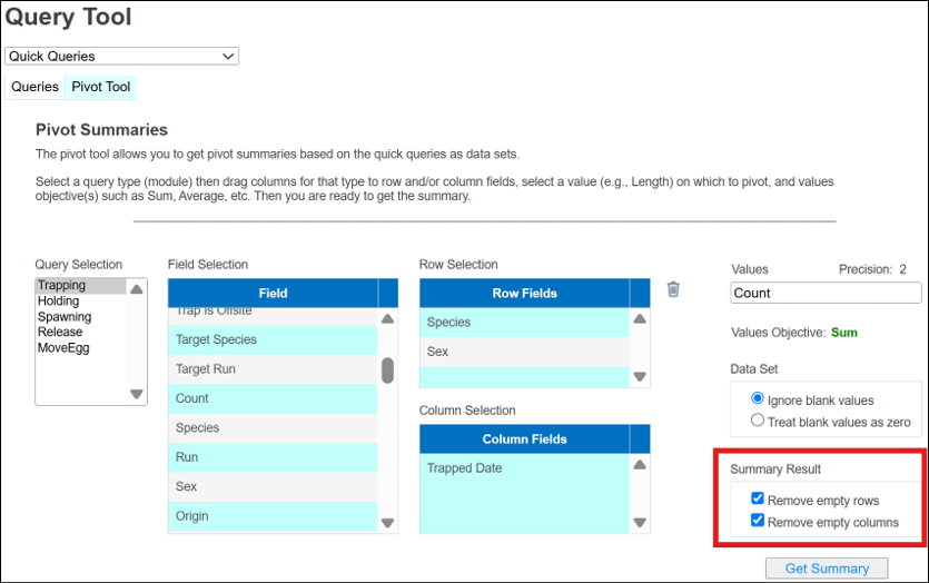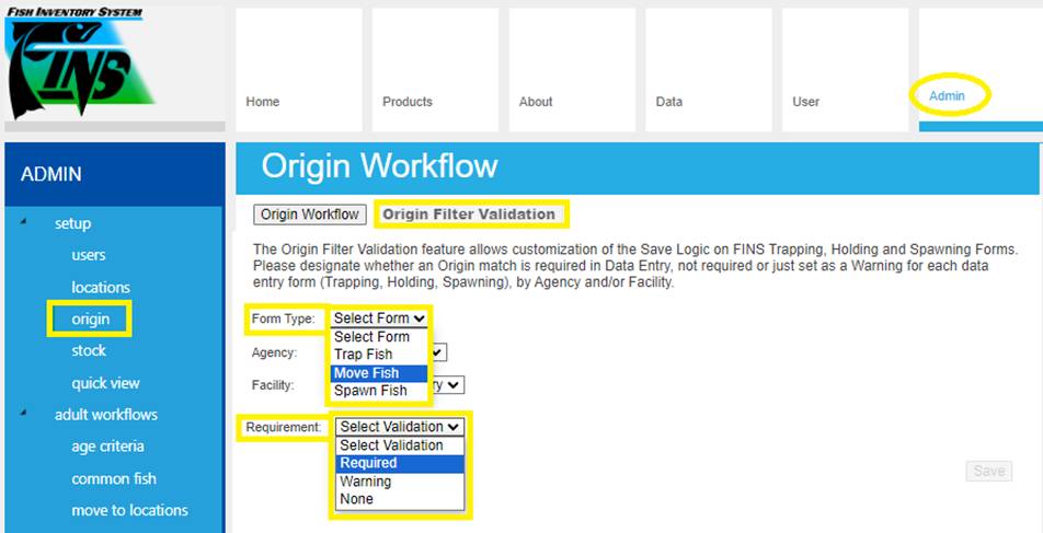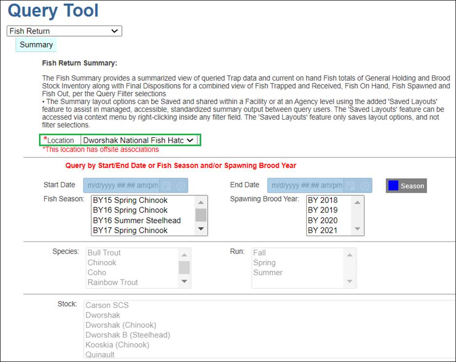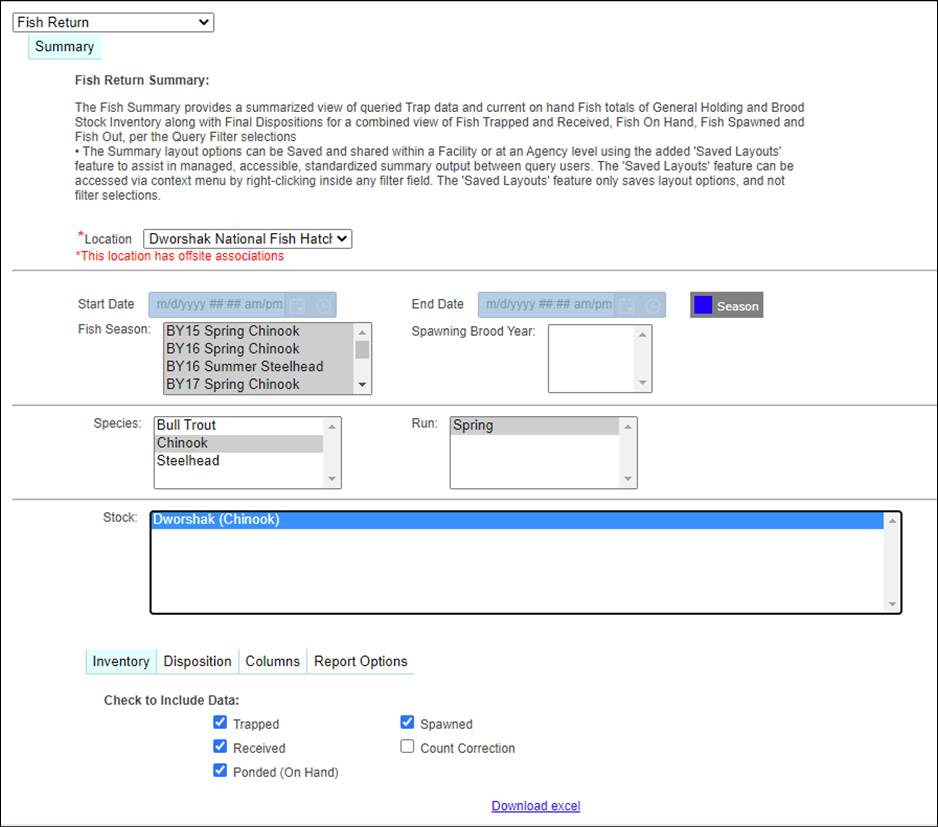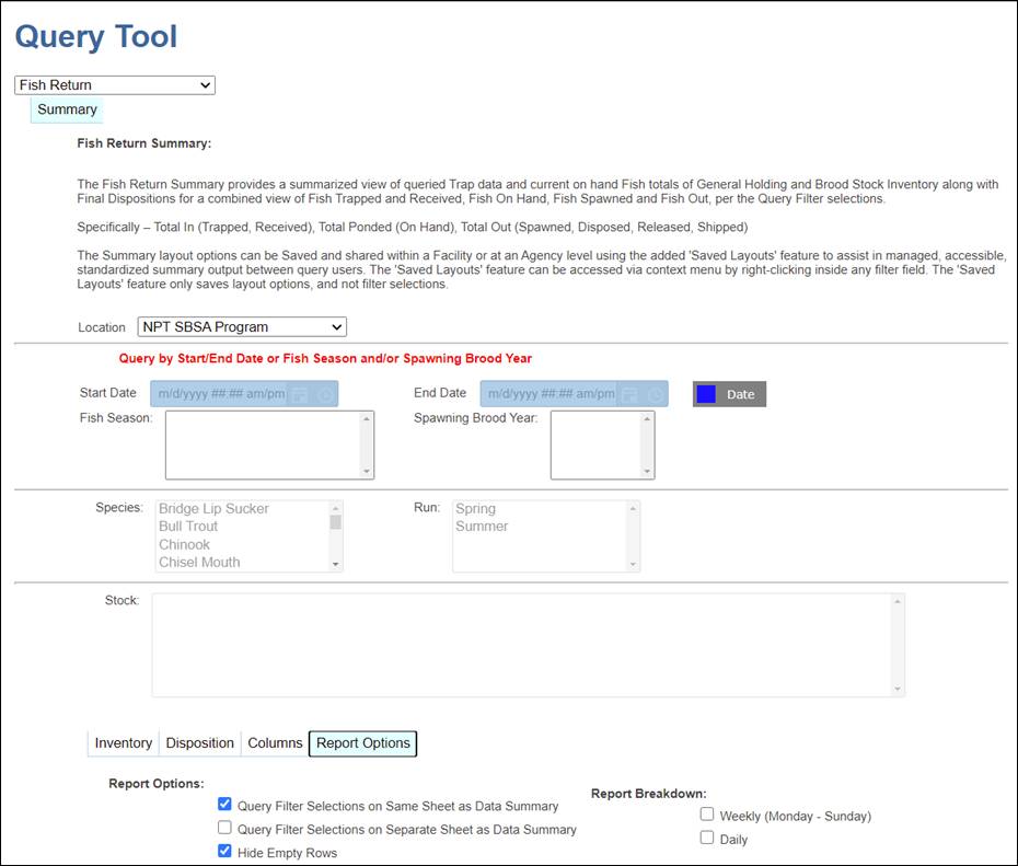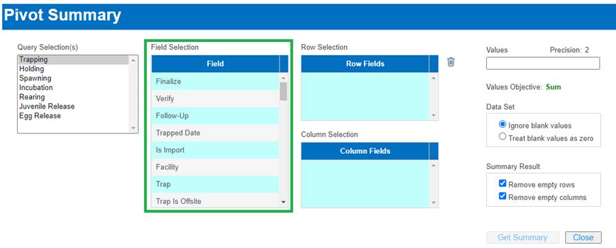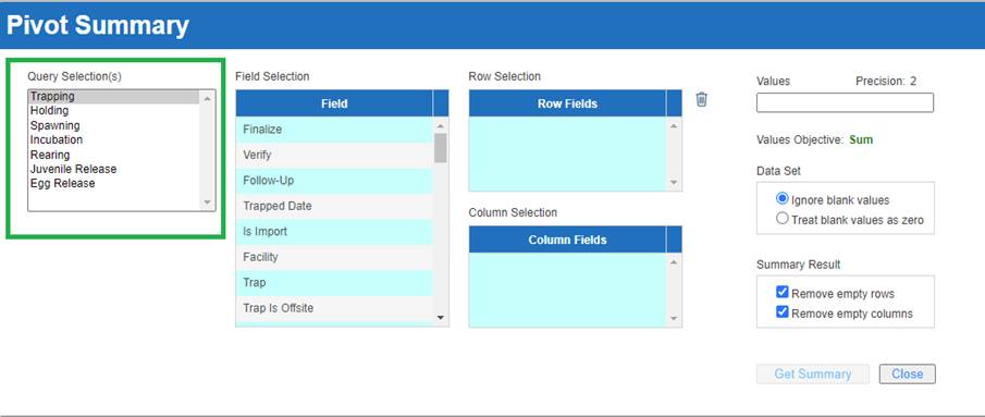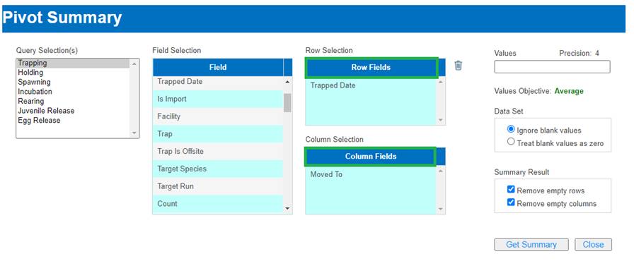 · Origin – View Workflow Origins and associated Origin Columns (Species; Origin; Origin Creator; Origin Creator Date; Agency; Facility; Trap; Run; Origin Identifier Expression; Origin Description)