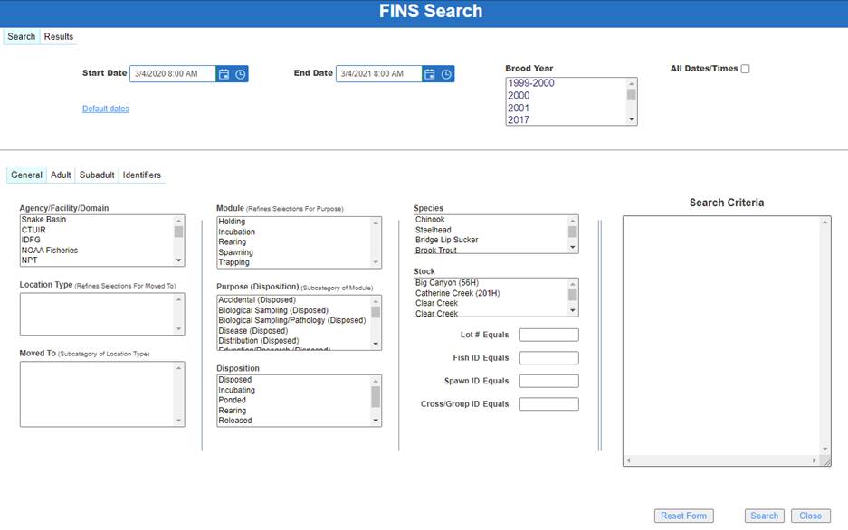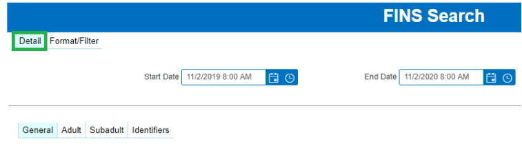 Search FINS >Search>Adult>Filter Selections