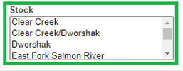 · Stock – View Stocks and associated Stock Columns (Name; Description; Agency/Facility; Species)