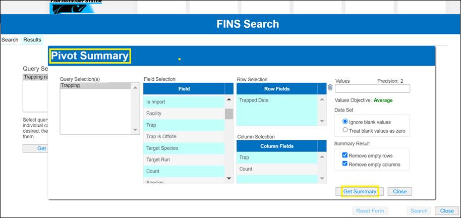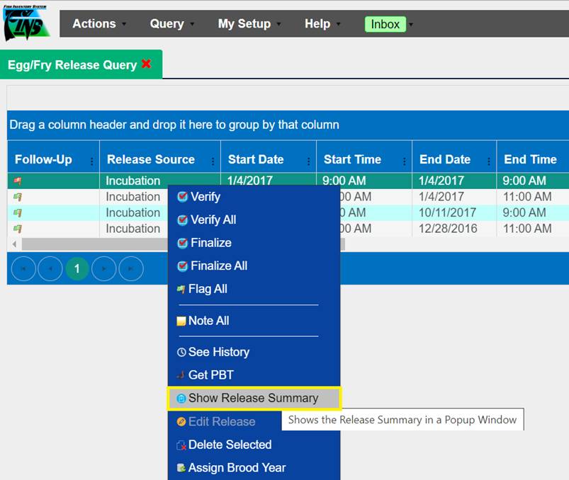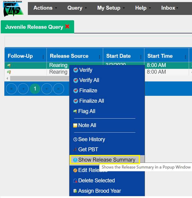 View Release Summary data – in FINS Online