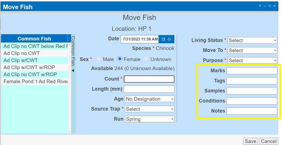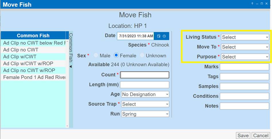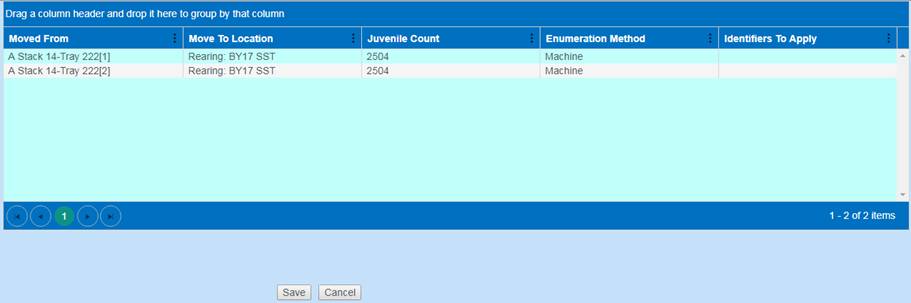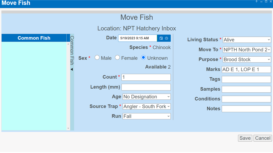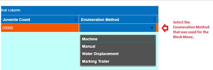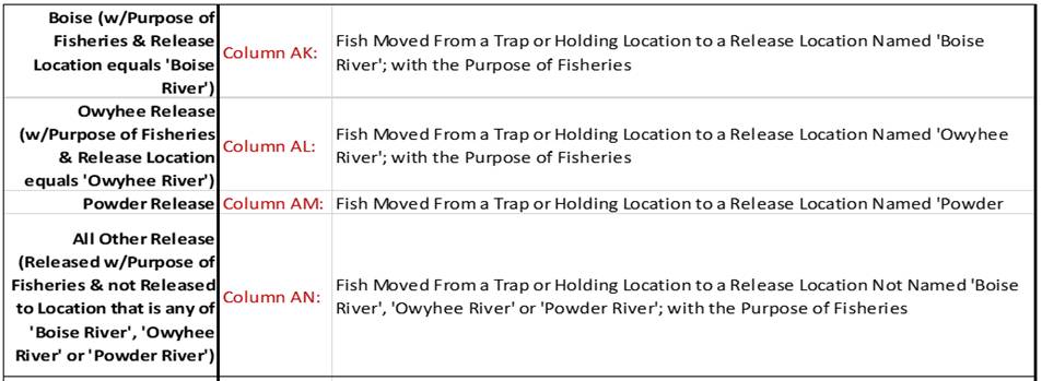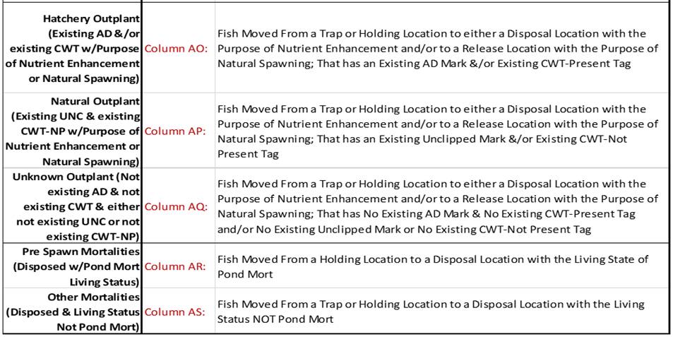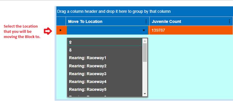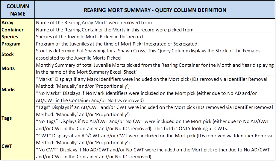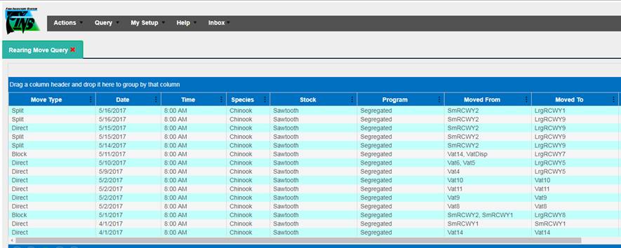 Move Type: A Column in the Rearing Move Query that displays the ‘Type of Move made’ for each Rearing Move Record. Either Block, Direct, Quota, Split and/or Release Types of Moves.