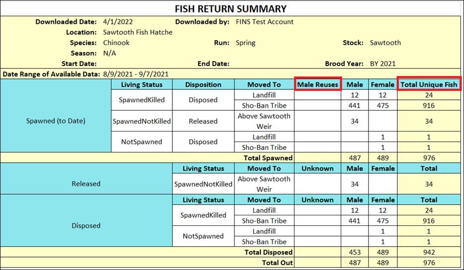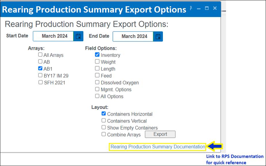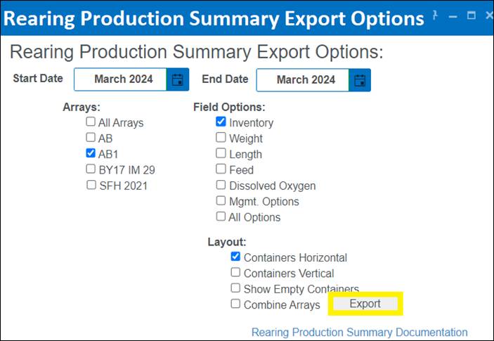 Section 1 - Rearing Production Summary Export Options