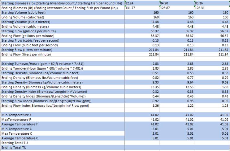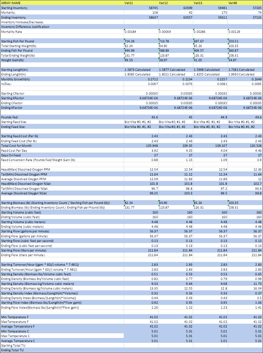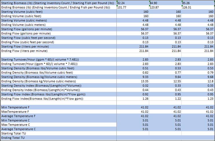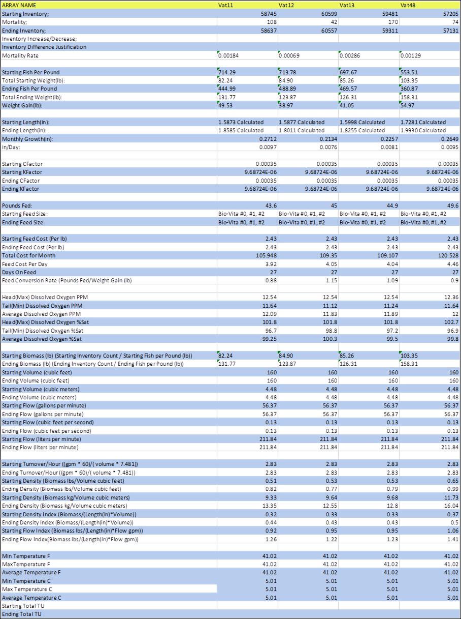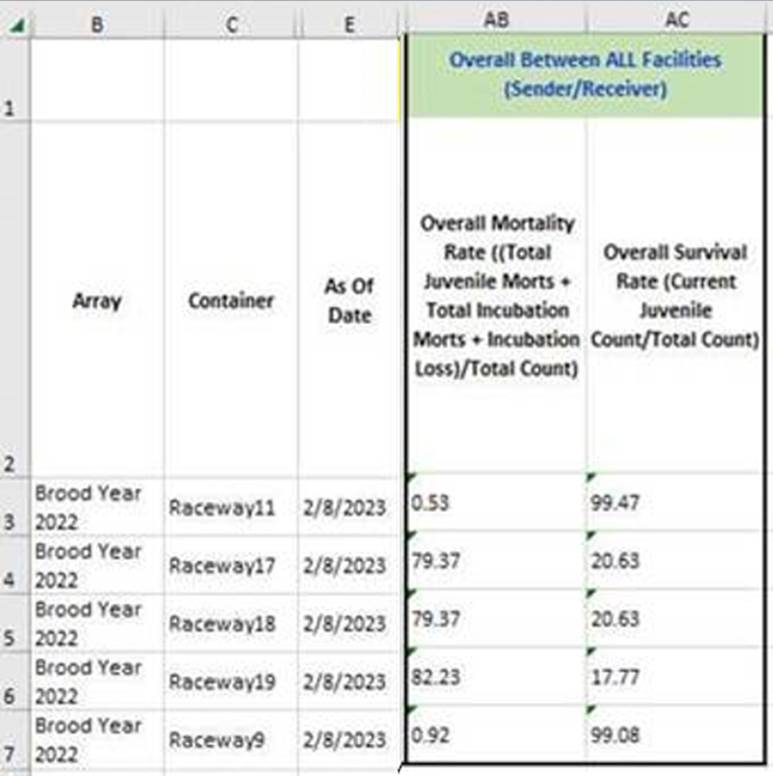 Rearing Survival Mortality Rate Summary