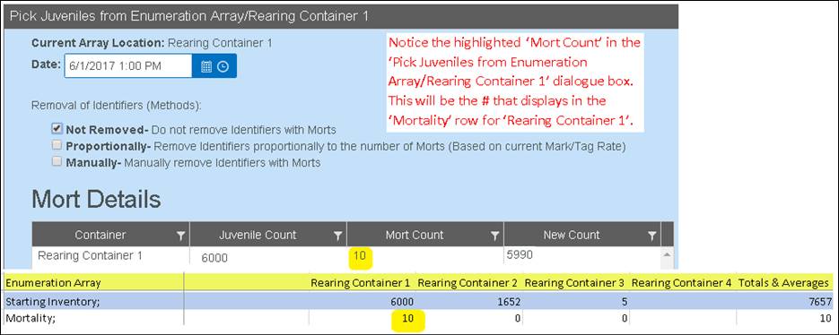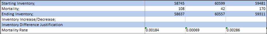 § Incubation Live Count is different from Inventory Count (Good Eggs at Enumeration) since Live Count takes morts into account and deducts from Inventory as shown below.