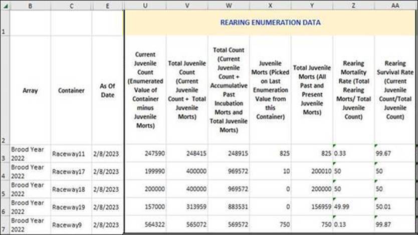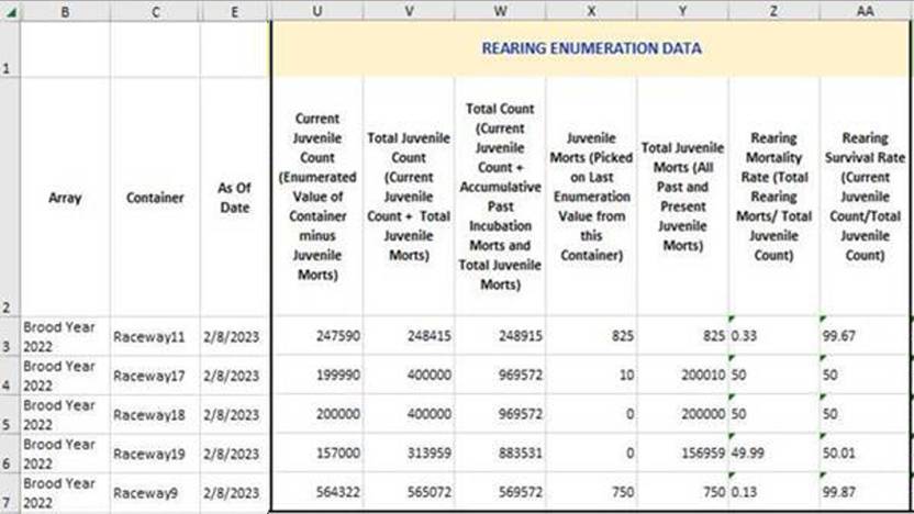 Section 2 - Rearing Production Summary File