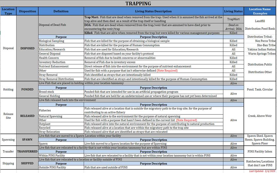 Queries – Trapping/Holding/Spawning/Move Egg/Release
