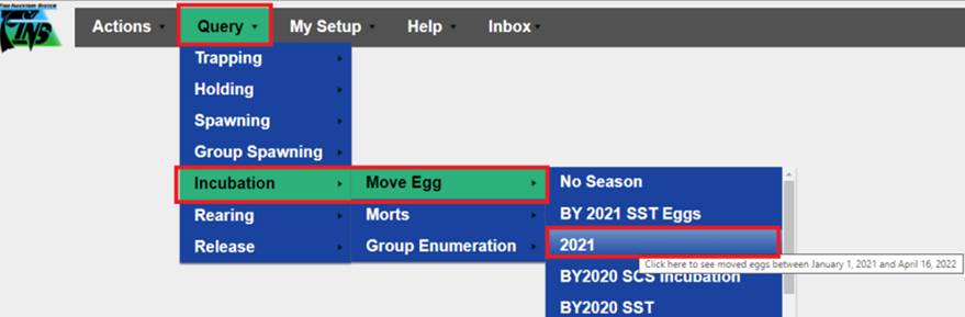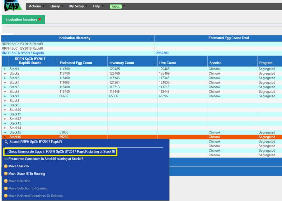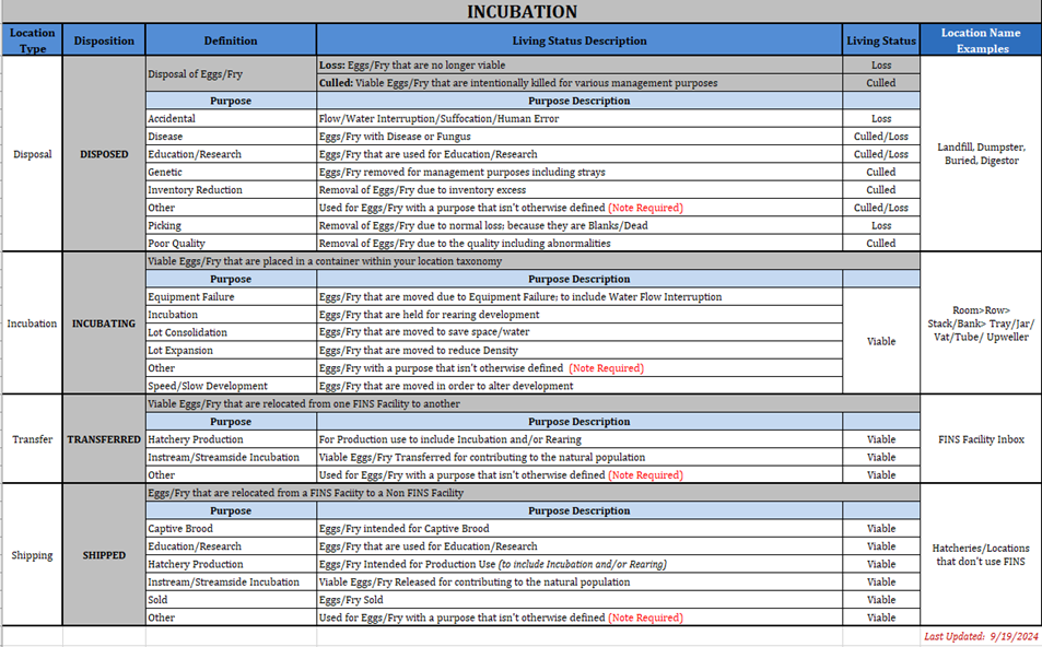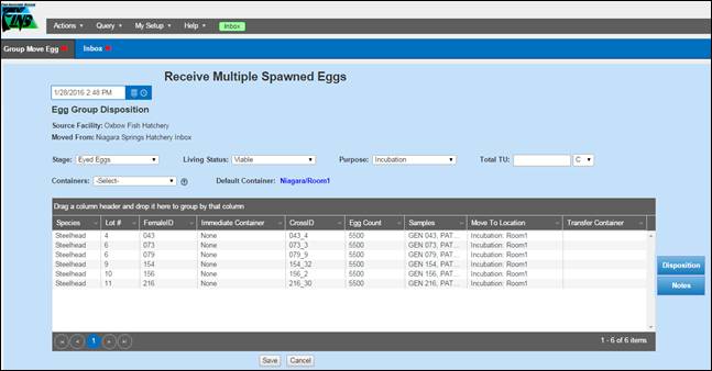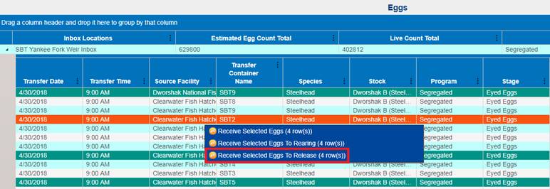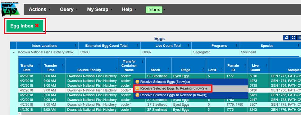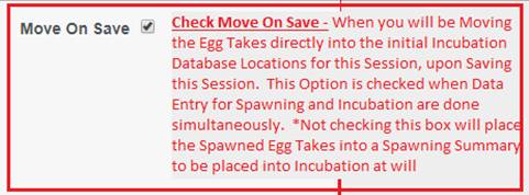 Create: The Creation of the Egg Record into Incubation; i.e.…Moving the Eggs from Spawning Temporary Locations into Incubation Database Locations