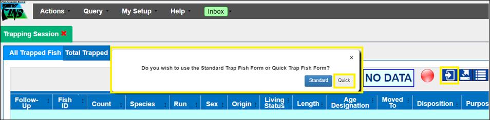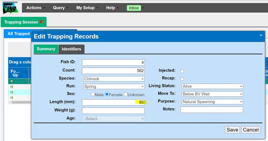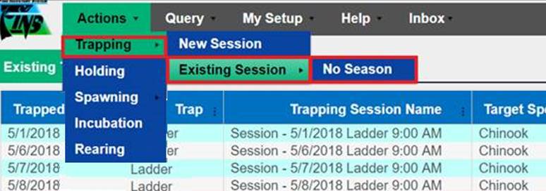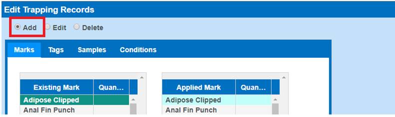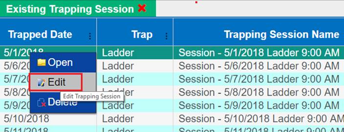 Adding Records to a New Trapping Session