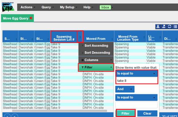 5. After filtering, there will be a list of records showing what was filtered