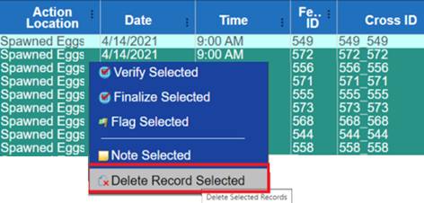 Delete: Deletion of data on the Egg Record; i.e.…when Picked Morts actions are Deleted from the Mort Query