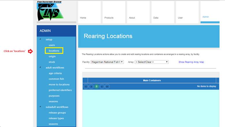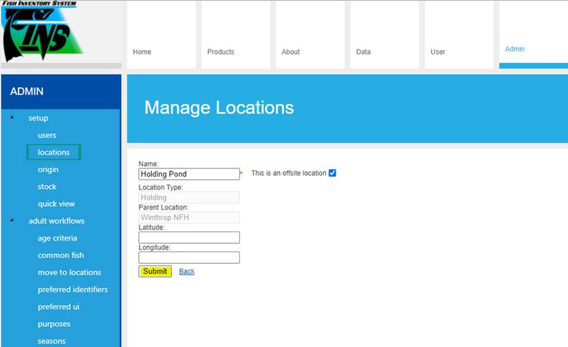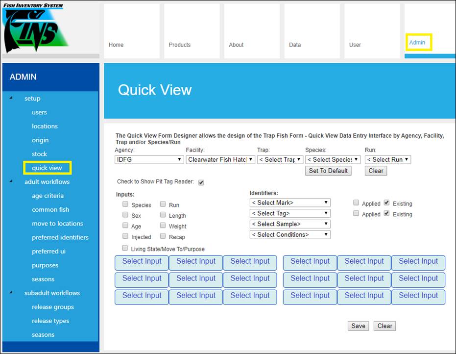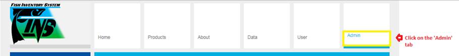 Selecting the Admin tab will give the user access to the tabs displayed below.