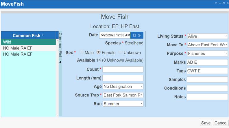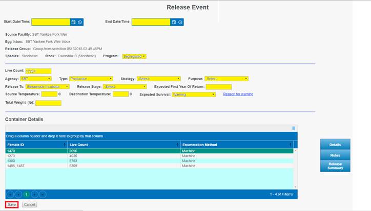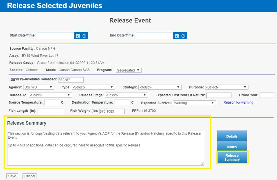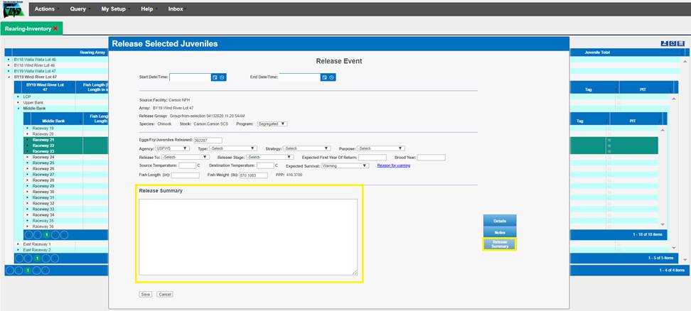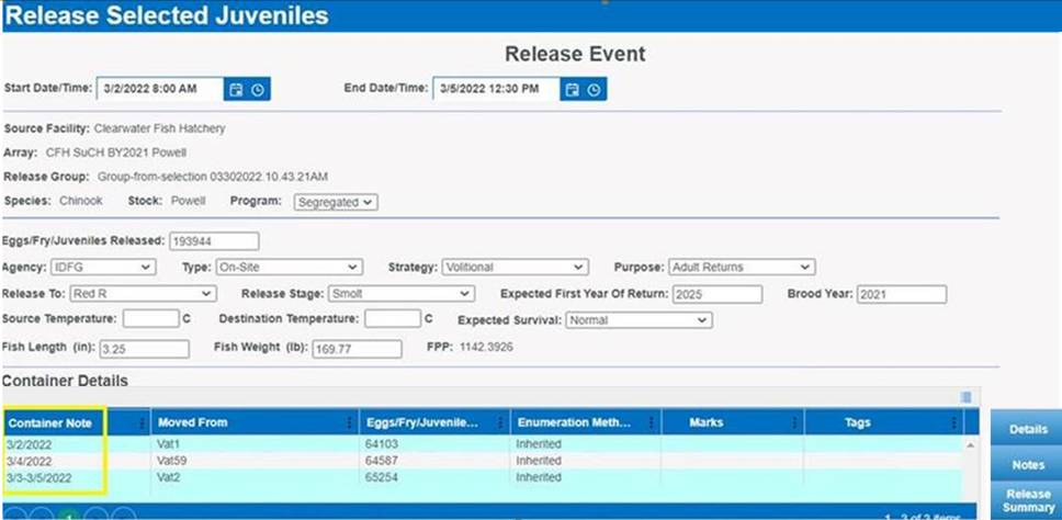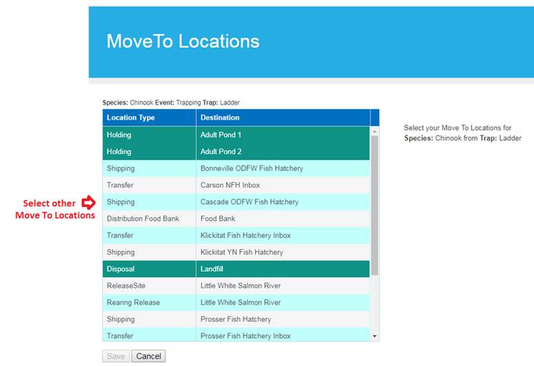 Move Type/Release: Move from Rearing to a Release Location
