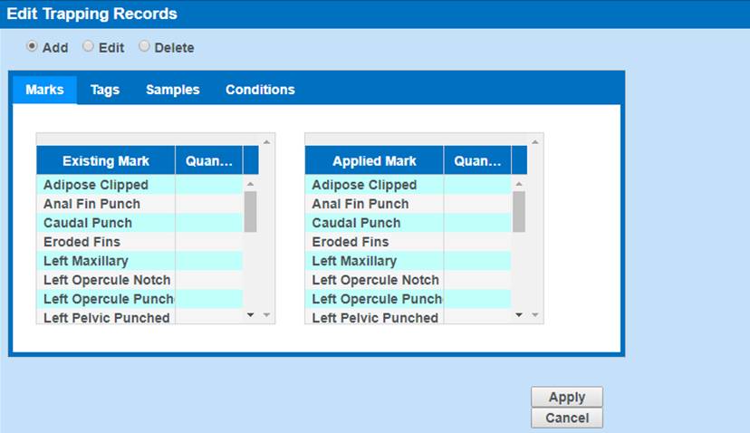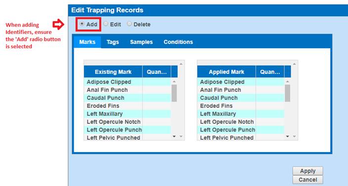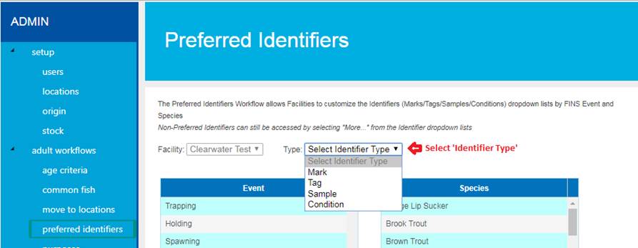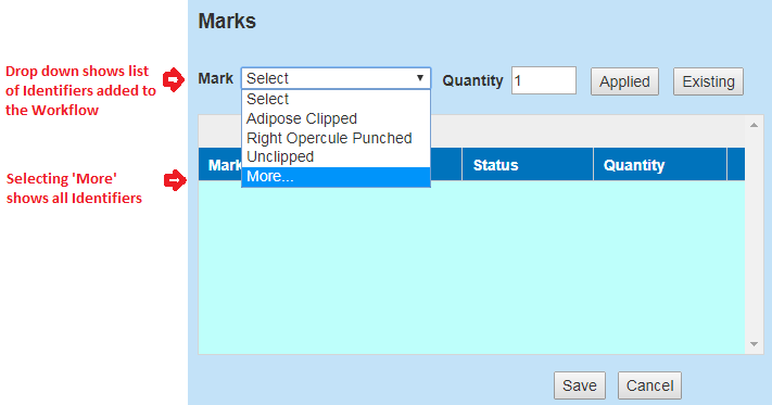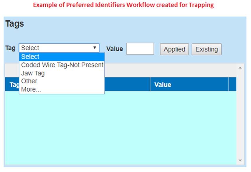 · Create Identifier Workflows: Currently only available for Trapping, the Identifier Workflow Menu is designed so that users can customize the Marks, Tags, Samples and/or Conditions that display in the Pick Lists when entering data through the Wizard.
