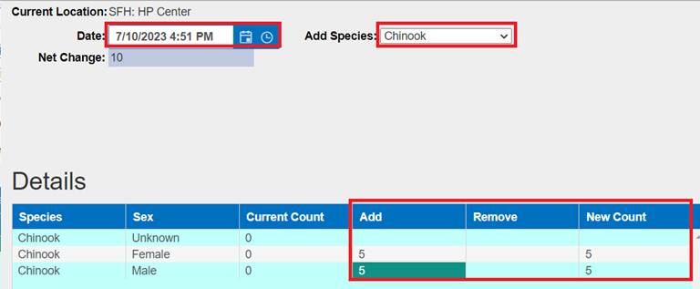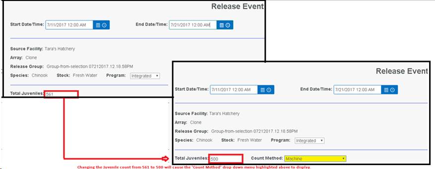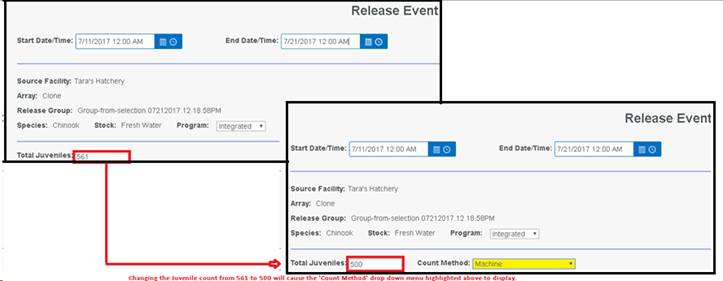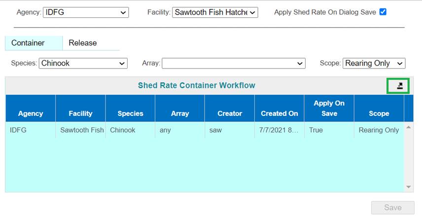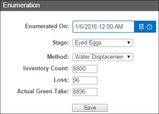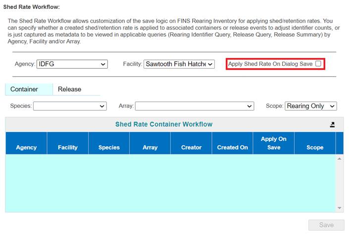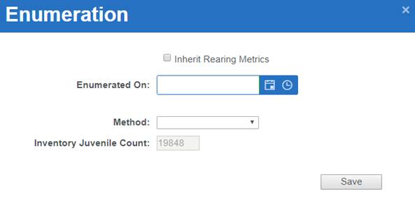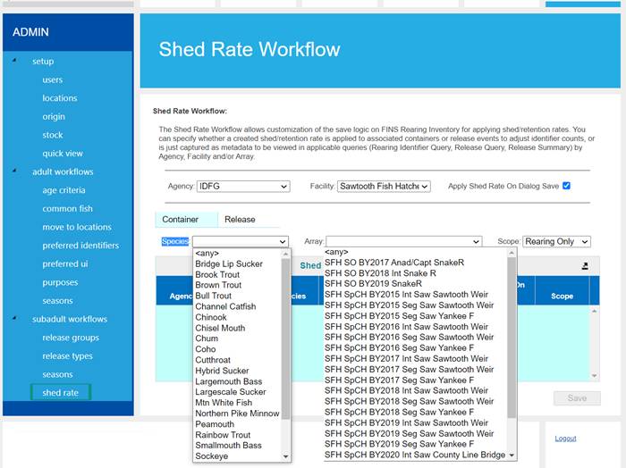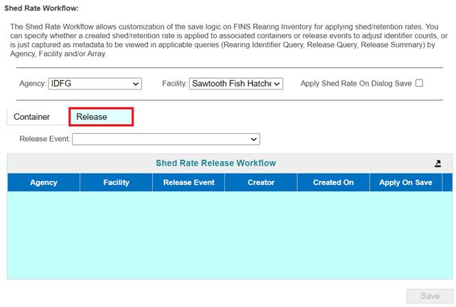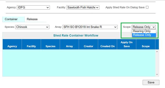 Shed/Retention Rate are user input values entered from either the Rearing Inventory grid while Juveniles are Rearing or at Release via the Release Form.