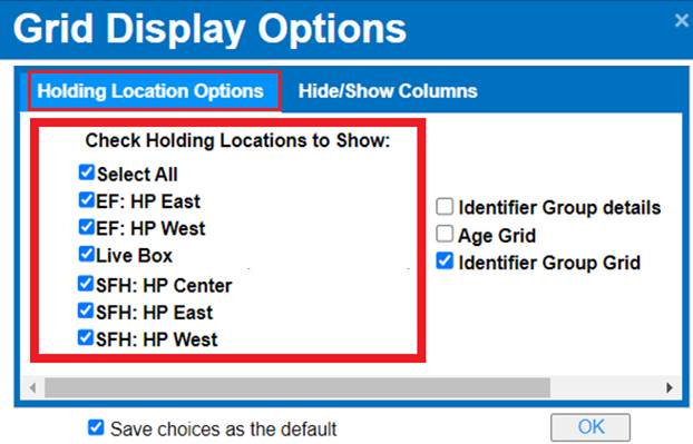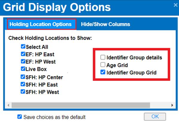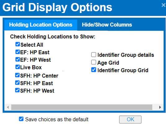 Incubation Grid Display Options