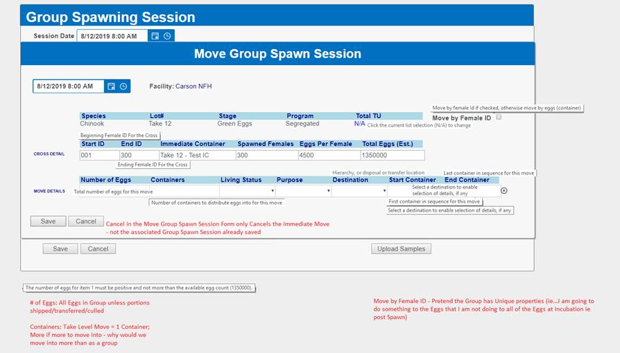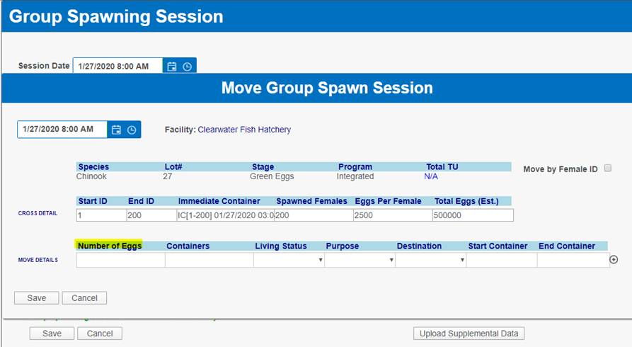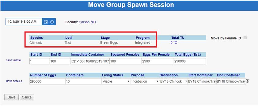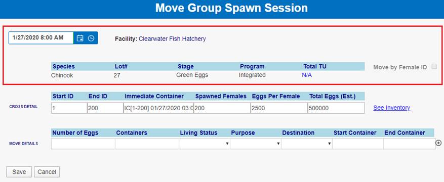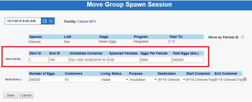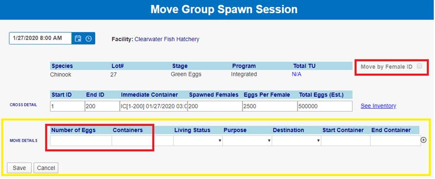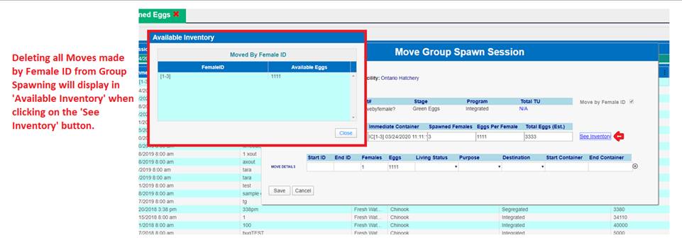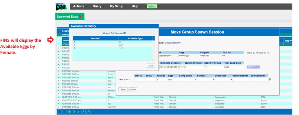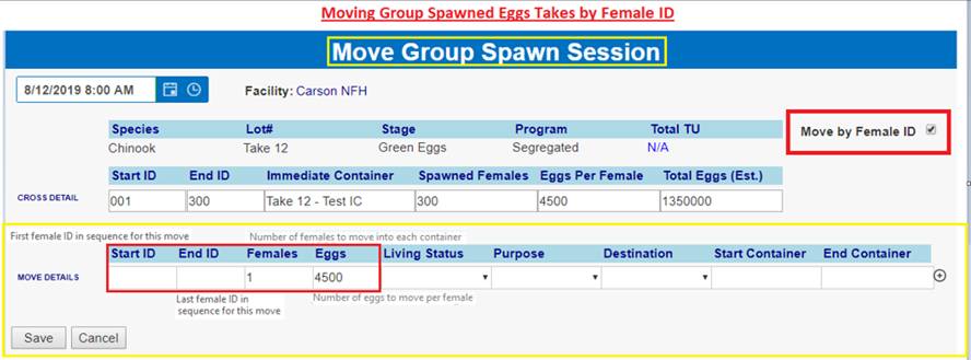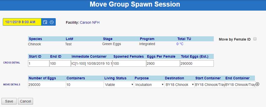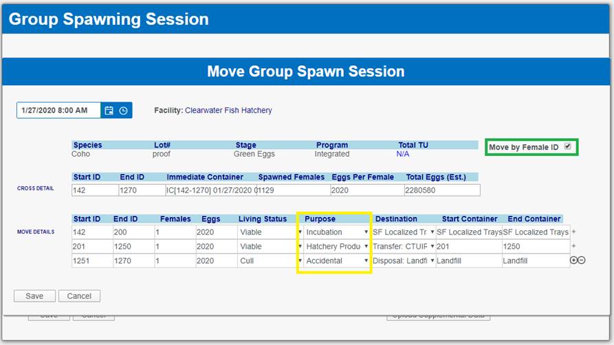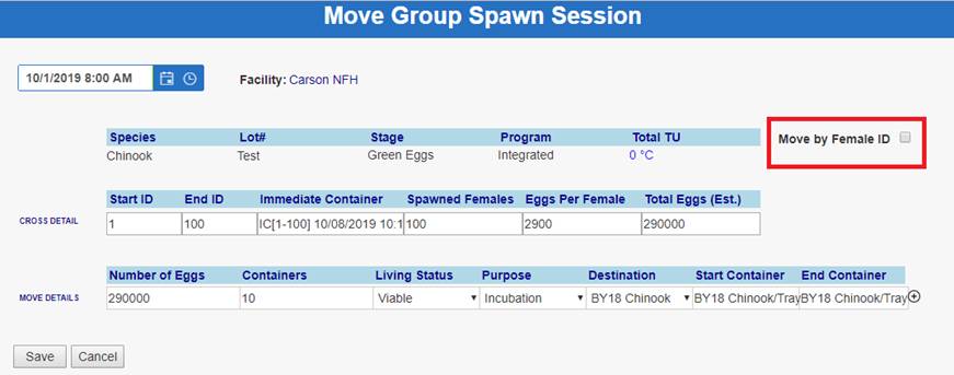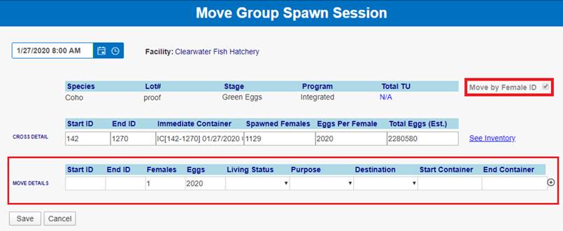 ‘Move by Female ID’ – From within BETA Group Spawning Session