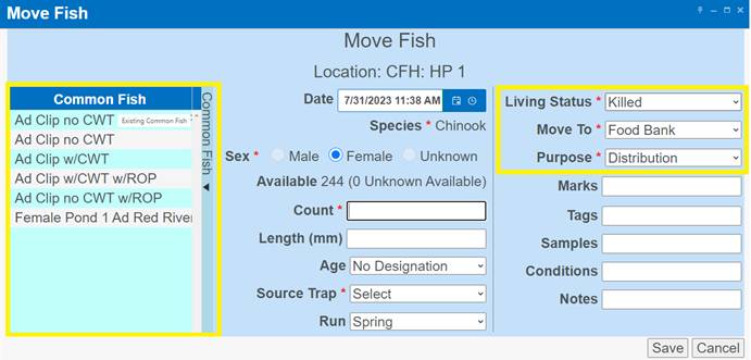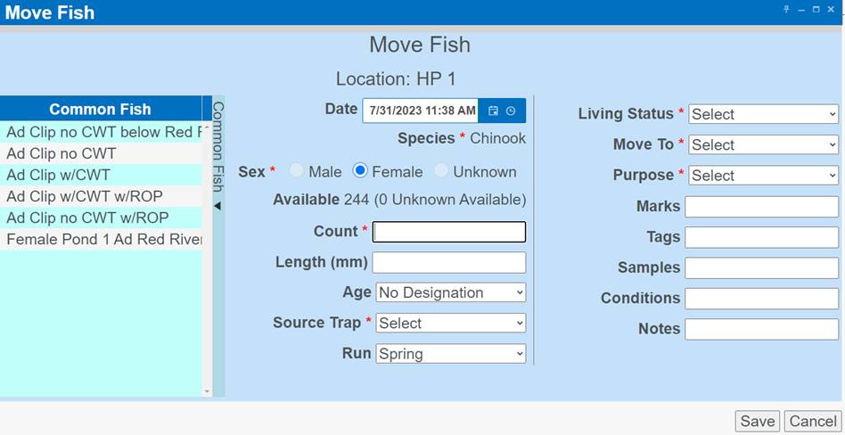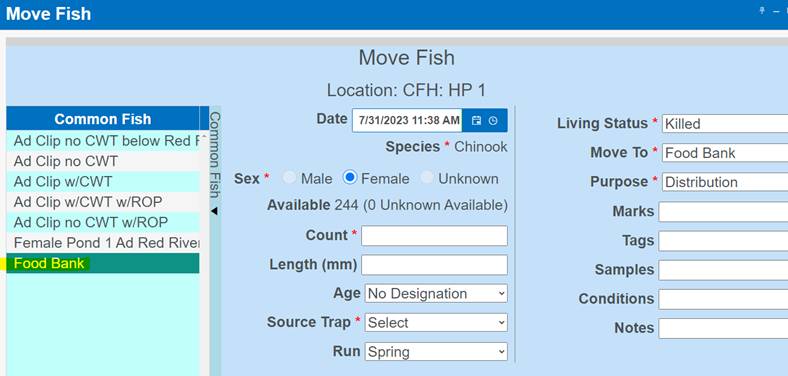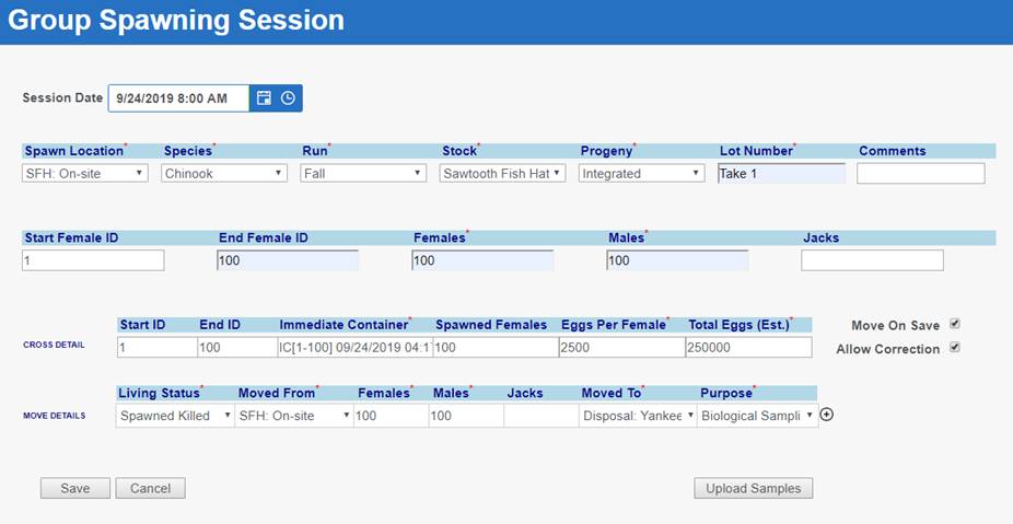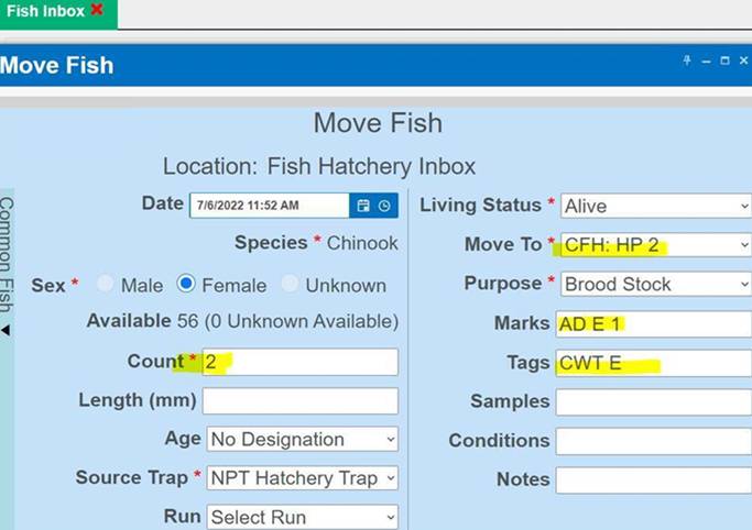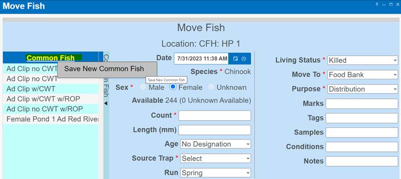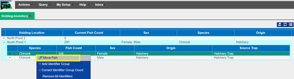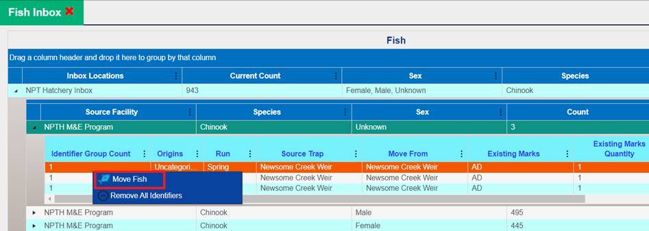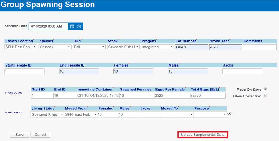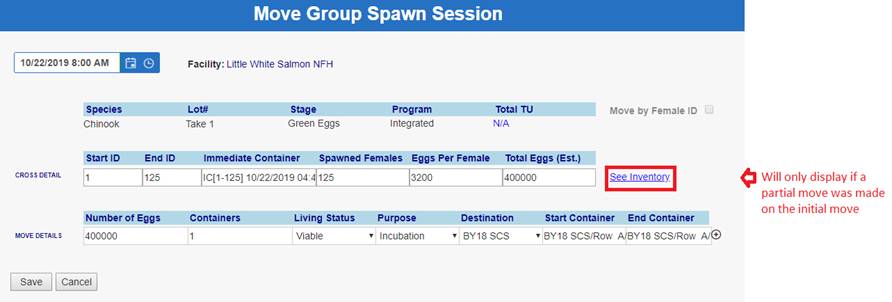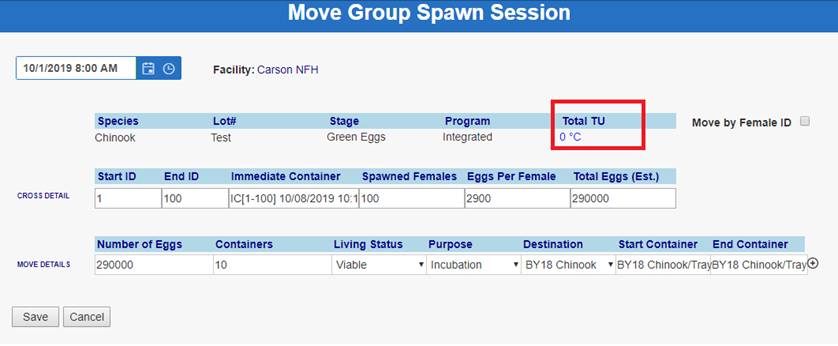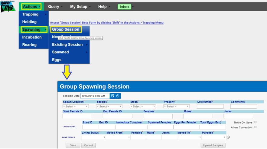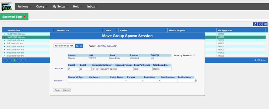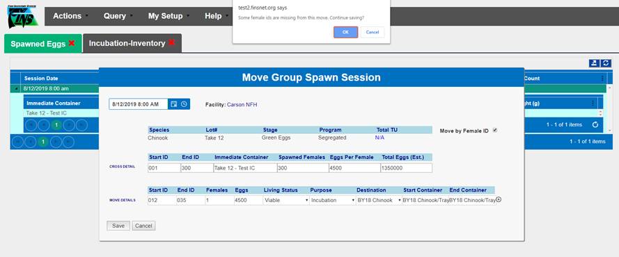 ‘Move by Female ID’ – From within BETA Group Spawning Session