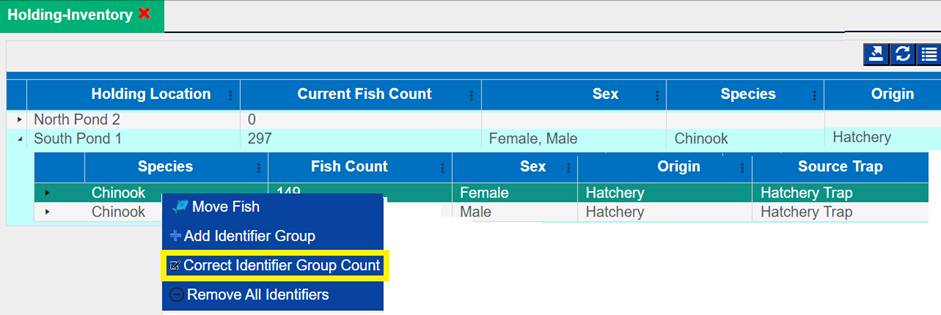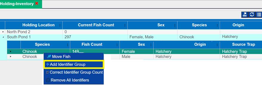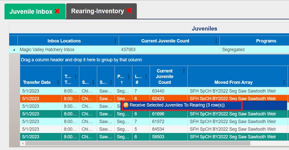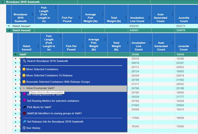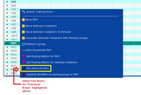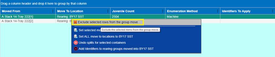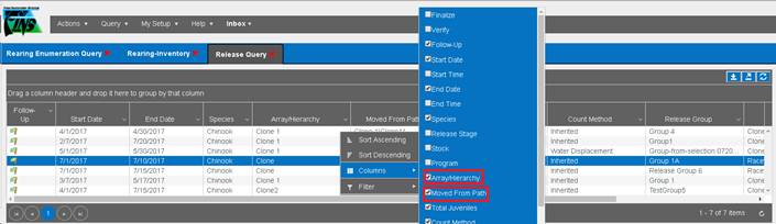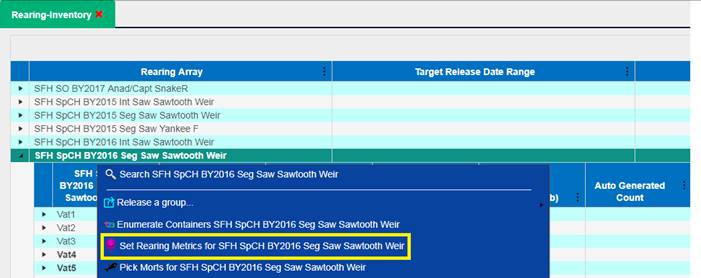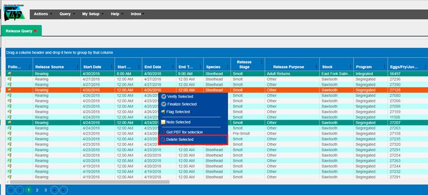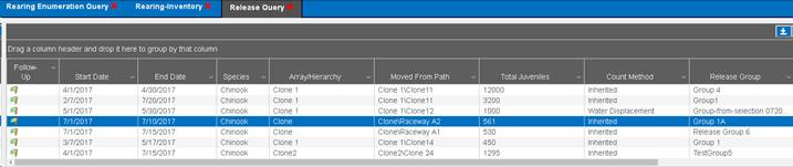 1. From the Juvenile Release Query, select the Release Group that you wish to add a Shed Rate to by right clicking and selecting ‘Apply a shed rate to this release’.