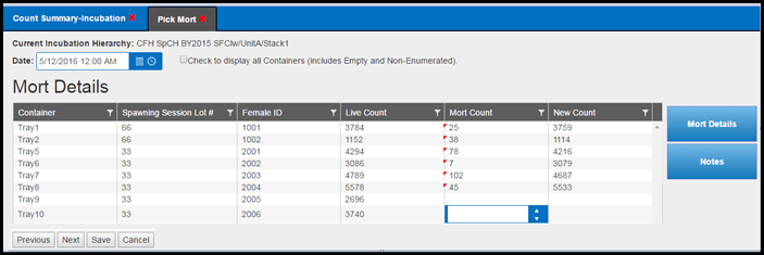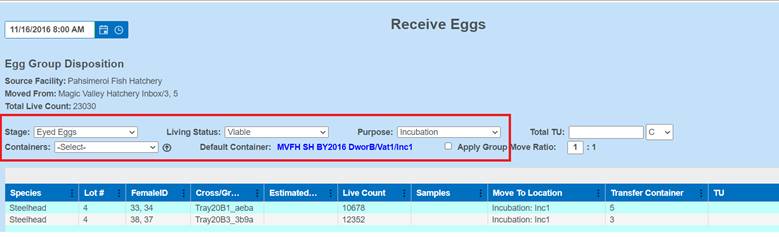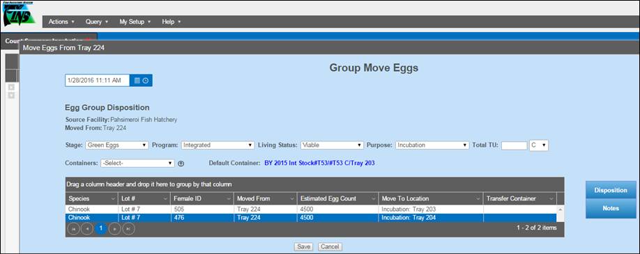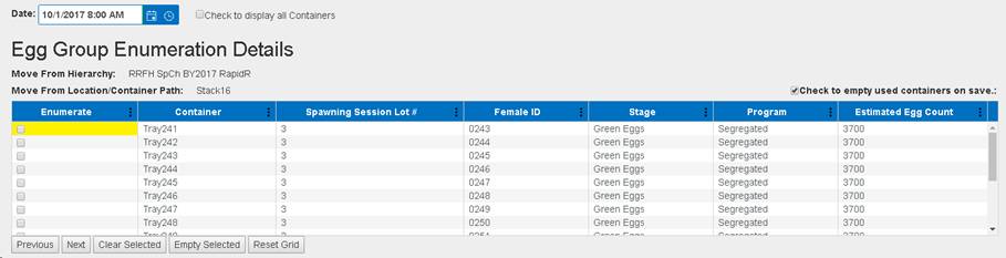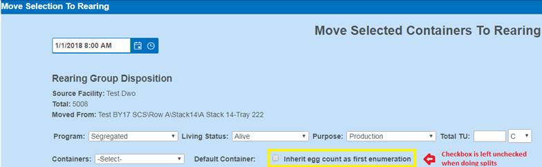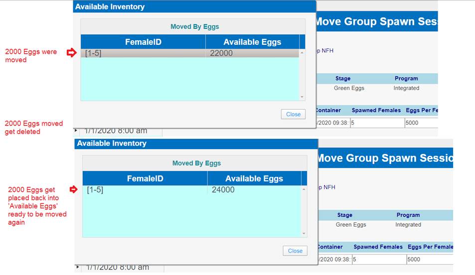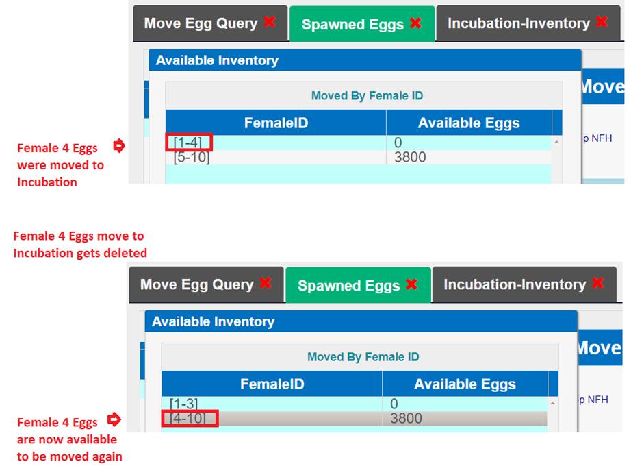 · Enumerating Eggs in an Incubation Container will update the current record in the Move Egg Query and will NOT create a new one