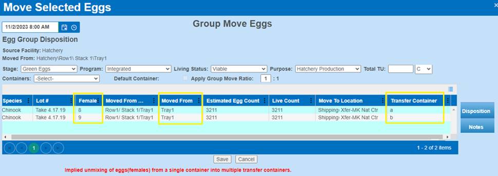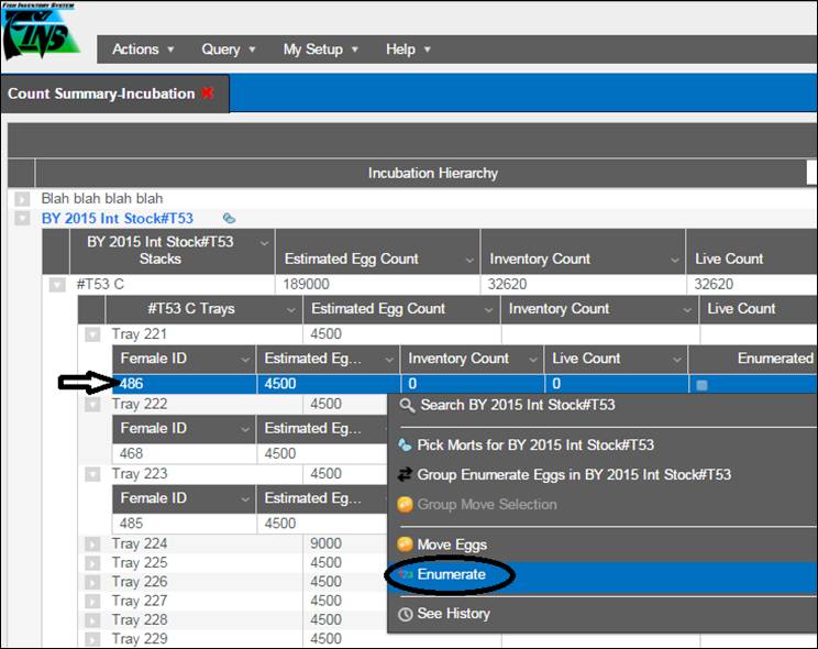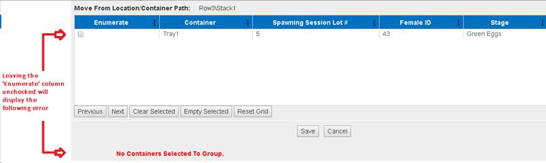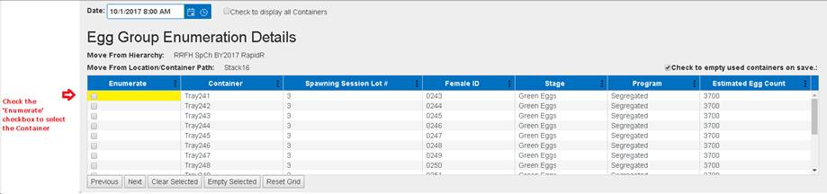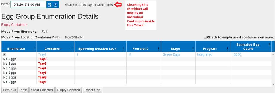 7. If a user made a Group Enumeration part of one Container, then deleting the Group Enumeration from the ‘Group Enumeration Query’ will place the Female eggs back into their original location.