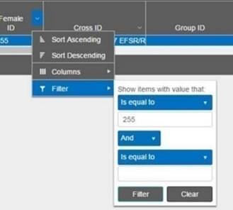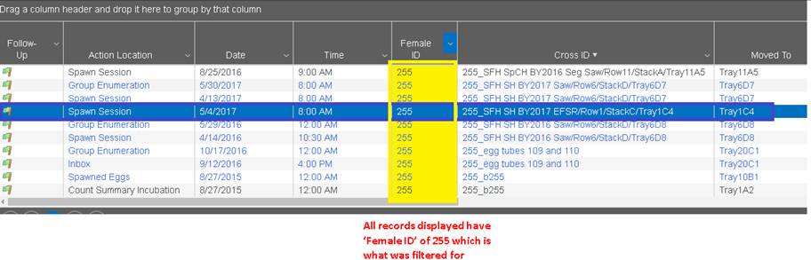 4. Use this tool to filter. In this example, ‘Female ID’ is filtered to display ID #255