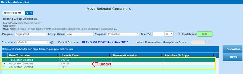 Move Type/Block: Move within Rearing via a Block Move