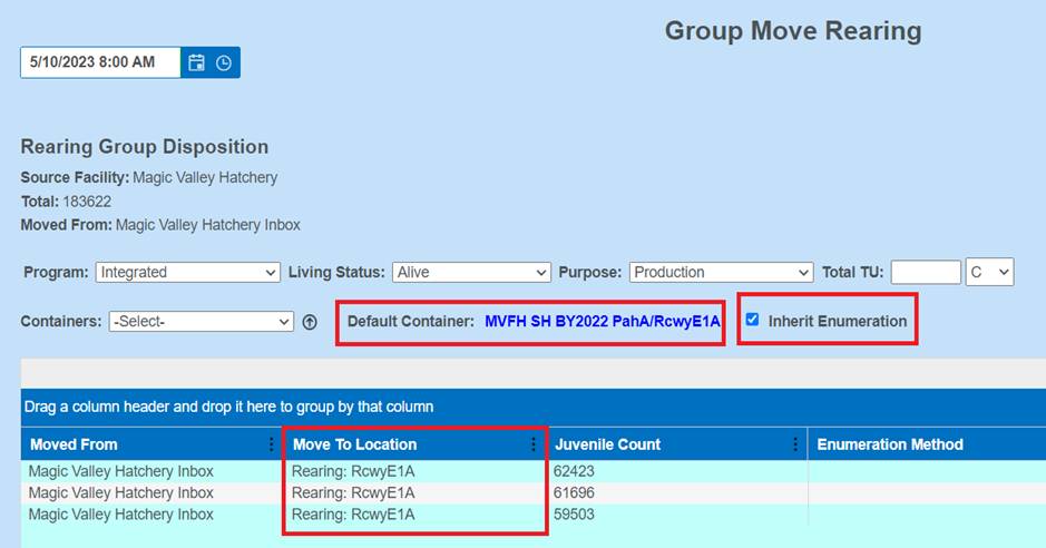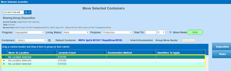Move Type/Quota: Move within Rearing via a Group Quota Move