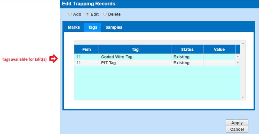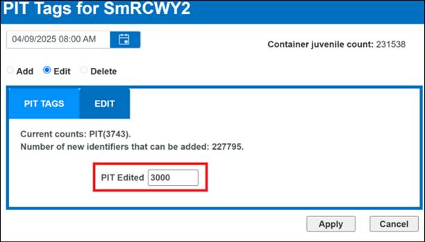 PIT Tags - Editing PIT Tags in a Rearing Container –