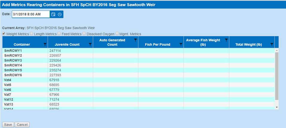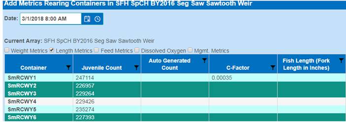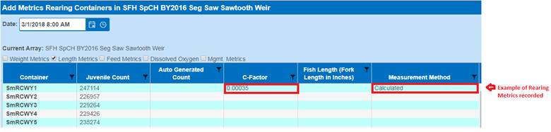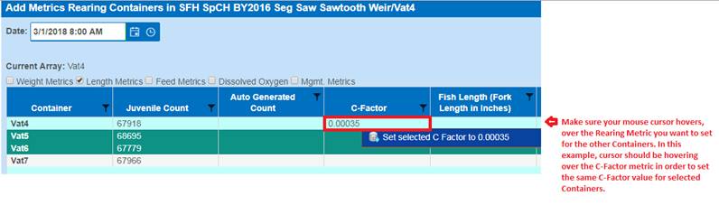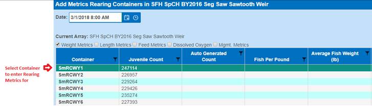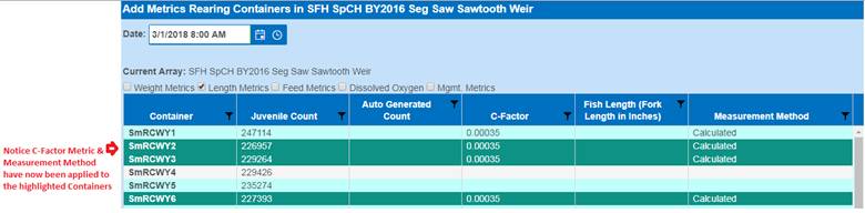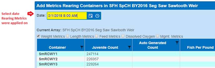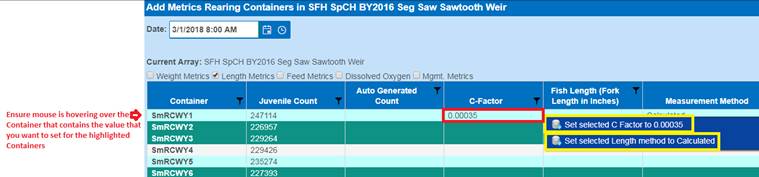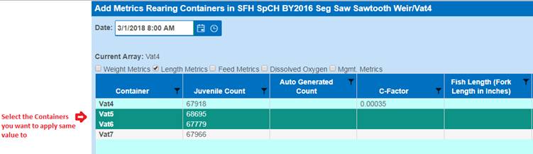 Setting Rearing Metrics to Multiple Containers (via the Rearing Metric Form)