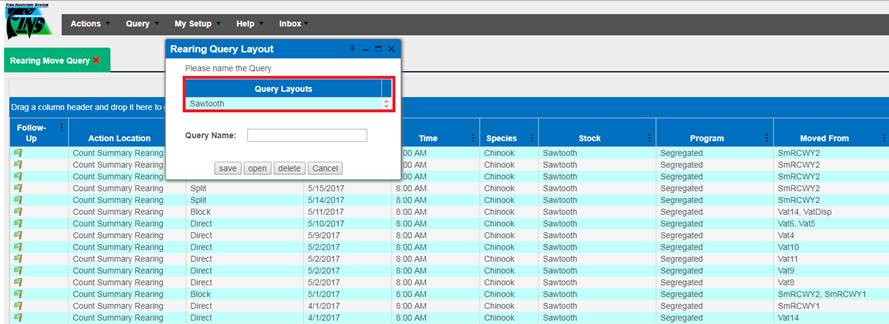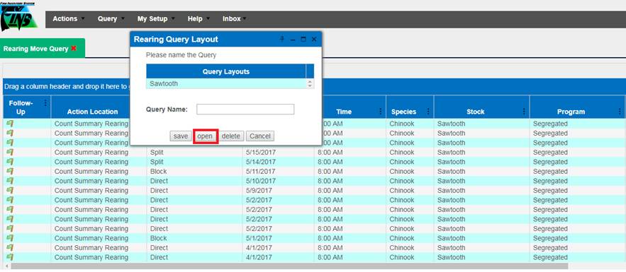 6) Open up the ‘Rearing Move’ Query