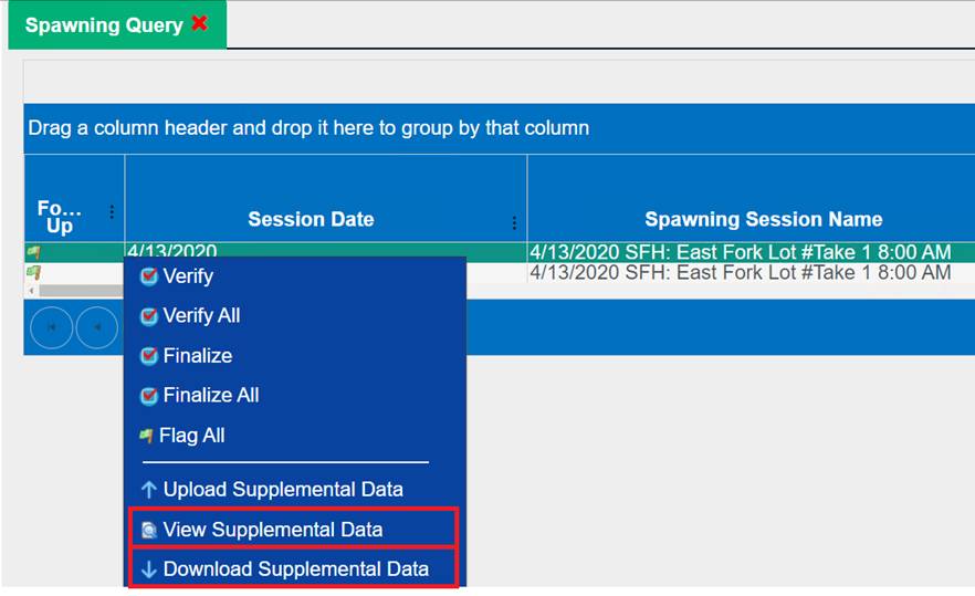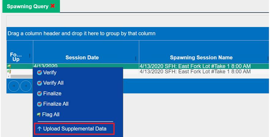 Adding Records to a New Spawning Session